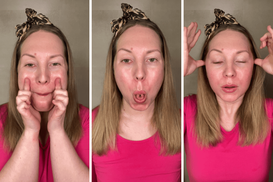 Treeneissä yhdistyvät kasvojen lihaksia aktivoiva jumppa sekä lihasjumeja ja jännityksiä vapauttava hieronta, joita molempia tarvitaan, jotta kasvojen ilme oikeasti muuttuu.